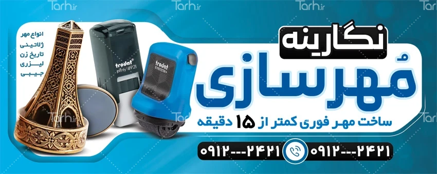 طرح آماده بنر تبلیغاتی مهرسازی با رنگبندی آبی کد فایل 3029645