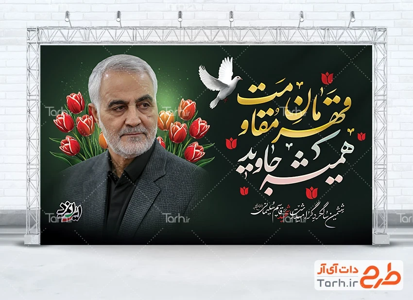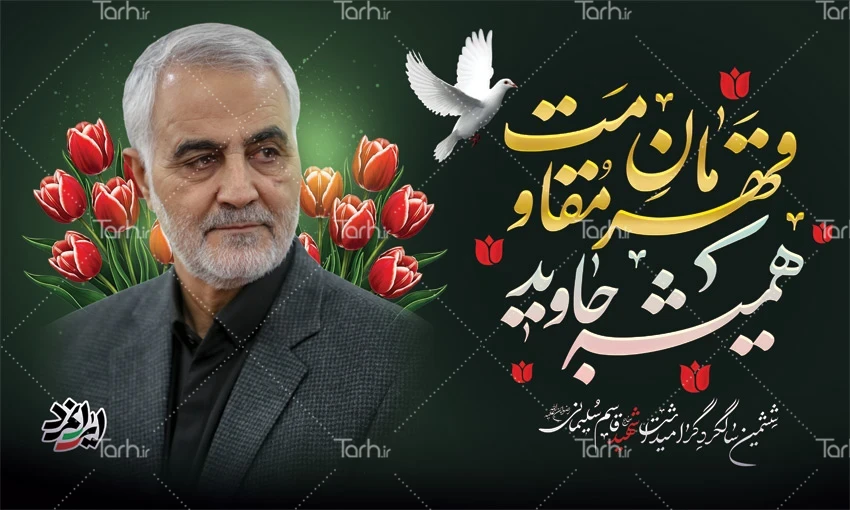 طرح لایه باز بنر سالگرد سردار سلیمانی دارای شعار ایرانمرد کد فایل 3074618