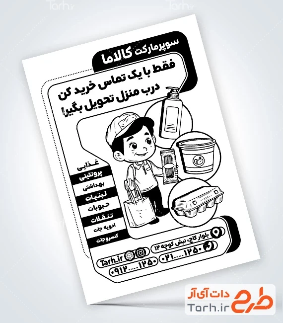 - دسته بندی : تراکت سیاه سفید سوپر مارکت و فروشگاه مواد غذایی