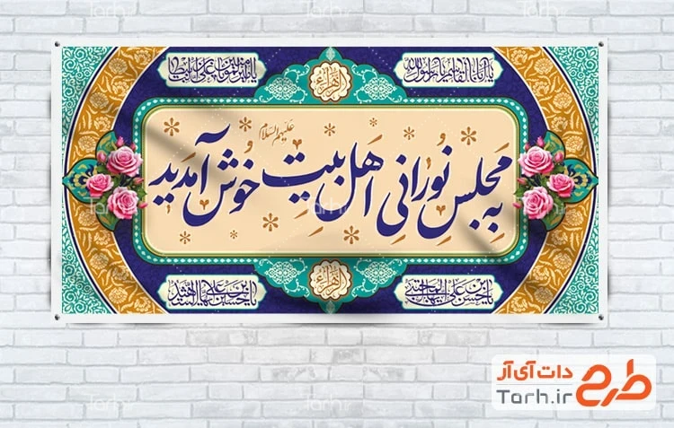 بنر خوش آمدگویی مراسم میلاد حضرت زهرا با خوشنویسی به مجلس نورانی اهل بیت خوش آمدید کد فایل 3094865