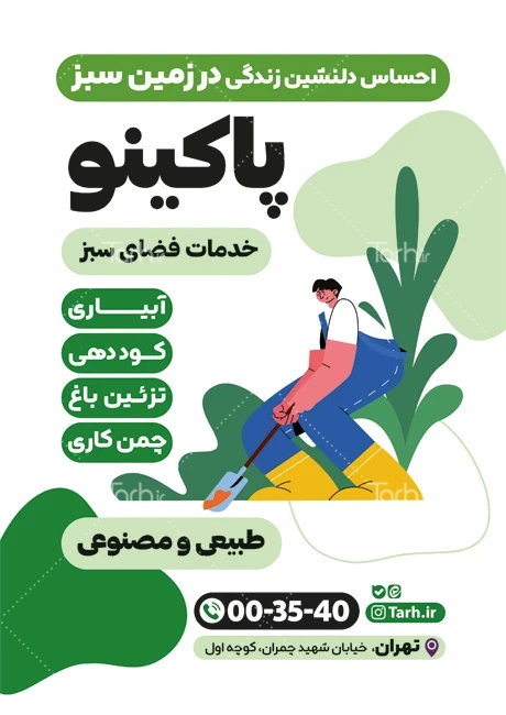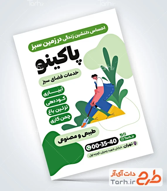 طرح آماده تراکت خدمات فضای سبز با فرمت psd و قابل ویرایش در نرمافزار فتوشاپ بهصورت لایه باز توسط تیم طراحان طرح دات آی آر طراحی شده است. در نمونه تراکت خدمات فضای سبز از تصاویر و المانهای باکیفیت و متناسب با استاندارد چاپ استفادهشده، همچنین نکات مهم در طرح تراکت خدمات فضای سبز مانند رنگبندی، رعایت حاشیه، فاصلهها، فضای کافی برای درج متن، سایز و نوع فونت مناسب طراحی تراکت و ... رعایت گردیده است. طرح لایه باز تراکت باغبانی شامل تصویرسازی باغبان میباشد که المانهای استفادهشده در طرح تراکت خدمات باغبانی قابلیت ویرایش، جابهجایی و تغییر سایز را دارا بوده و شما میتوانید متناسب باسلیقه خودتان تراکت لایه باز خدمات فضای سبز را ویرایش نمایید، همچنین با تغییر تصاویر و متنها میتوانید طرح تراکت خدمات کشاورزی را به طرح تراکت کسب و کار مد نظر خود شخصی سازی نمایید.