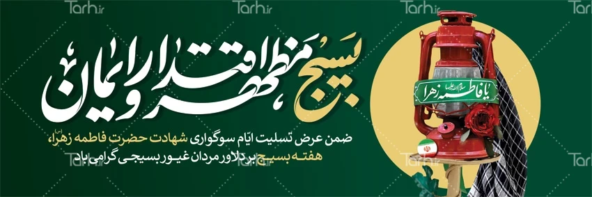 طرح پلاکارد فاطمیه و هفته بسیج با تایپوگرافی بسیج مظهر اقتدار و ایمان کد فایل 3104726
