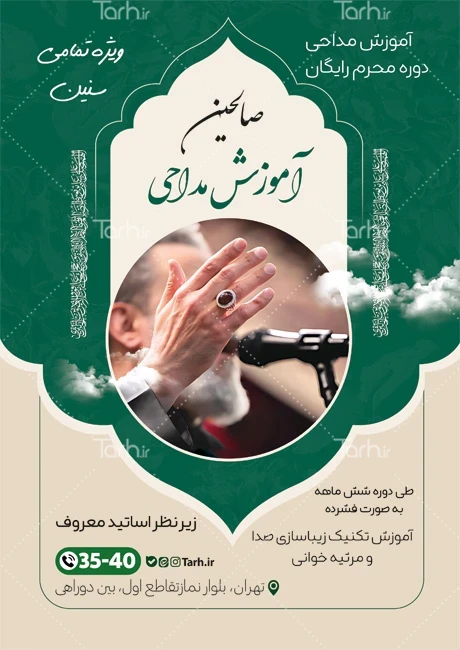 طرح پوستر تبلیغاتی آموزش مداحی به صورت لایه باز کد فایل 3154069