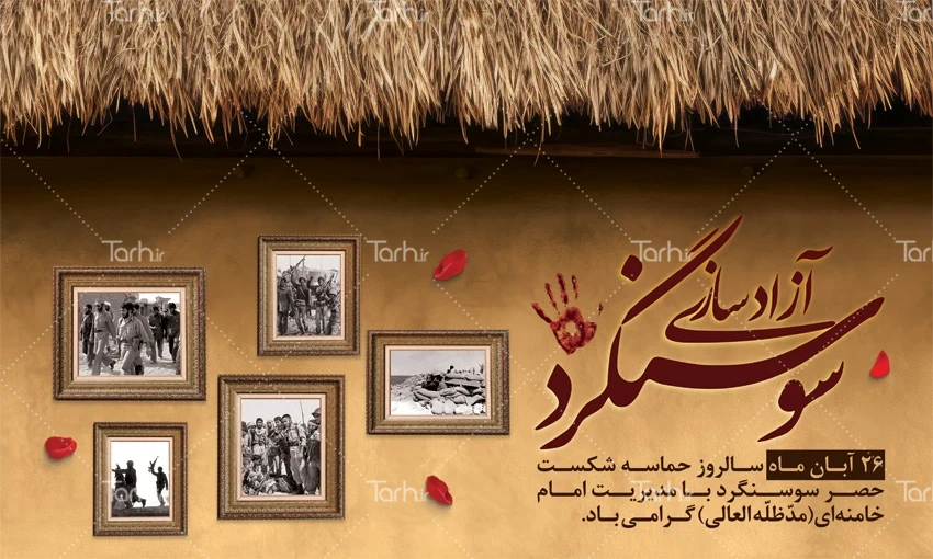 طرح بنر خام آزادسازی سوسنگرد دارای قاب عکس رهبر در دفاع مقدس کد فایل 3167845