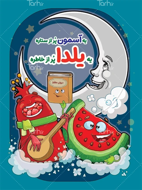 طرح بنر خام شب چله دارای تصویرسازی ماه و هندوانه کد فایل 3182059