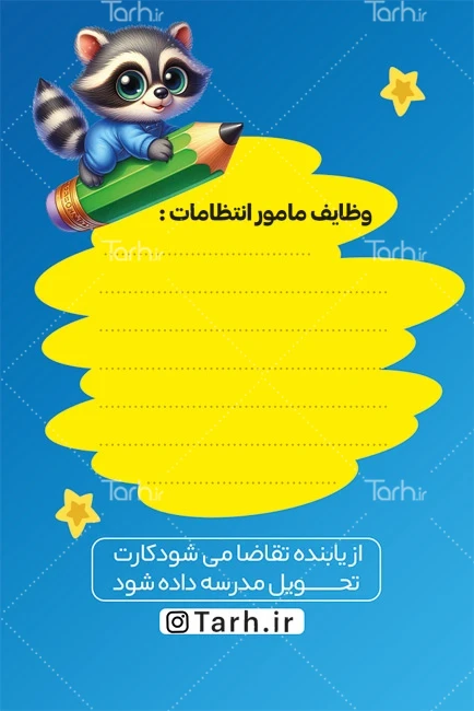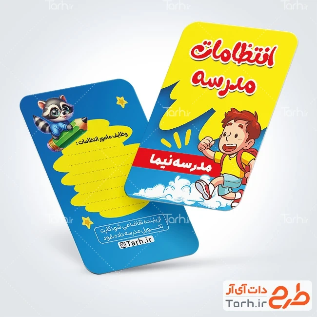 طرح لایه باز کارت انتظامات مدرسه با تم آبی و زرد کد فایل 3192874