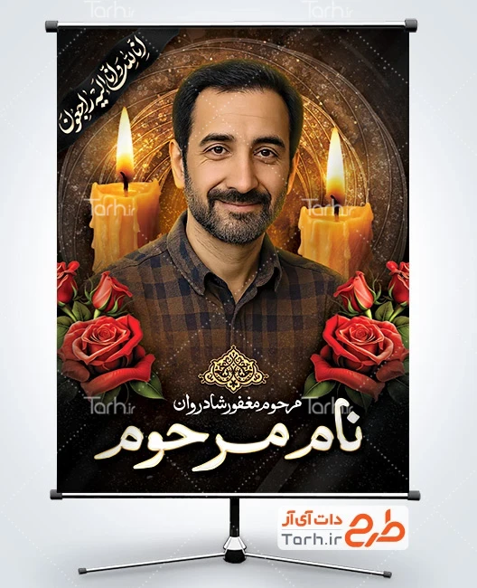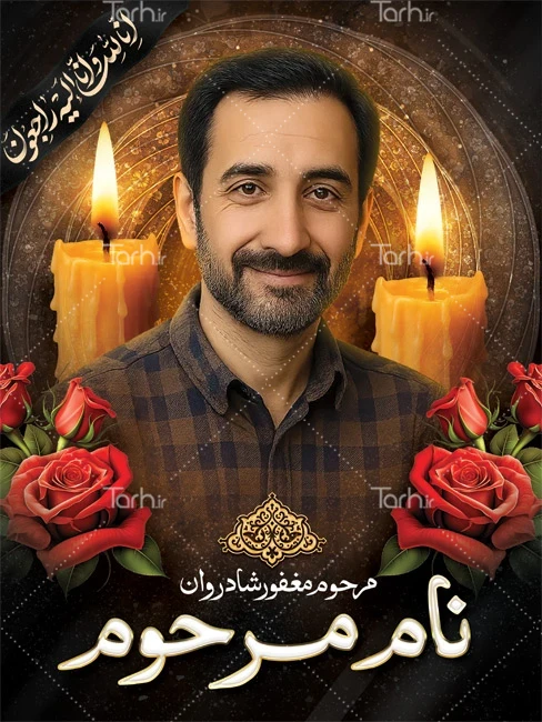 طرح بنر آماده تصویر مرحوم با فرمت psd و قابل ویرایش در نرم افزار فتوشاپ به صورت لایه باز توسط تیم طراحان طرح دات آی آر طراحی شده است. در طرح لایه باز عکس مرحوم از تصاویر و المان های با کیفیت و متناسب با استاندارد چاپ استفاده گردیده است. طرح بنر عکس مرحوم شامل محل جایگذاری عکس مرحوم، تایپوگرافی انا لله و انا الیه راجعون و عکس شمع می باشد که المان های استفاده شده در بنر تصویر مرحوم قابلیت ویرایش، جابه جایی و تغییر سایز را دارا بوده و شما می توانید متناسب با سلیقه خودتان طرح بنر ترحیم و تصویر مرحوم را ویرایش نمایید.