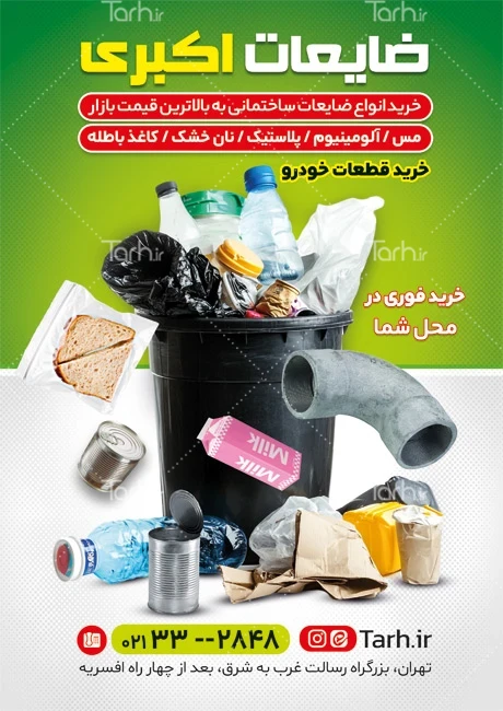 تراکت خام خرید و روش ضایعات با فرمت psd و قابل ویرایش در نرمافزار فتوشاپ بهصورت لایه باز توسط تیم طراحان طرح دات آی آر طراحی شده است. در نمونه تراکت ضایعات از تصاویر و المانهای باکیفیت و متناسب با استاندارد چاپ استفادهشده، همچنین نکات مهم در طرح تراکت ضایعات مانند رنگبندی، رعایت حاشیه، فاصلهها، فضای کافی برای درج متن، سایز و نوع فونت مناسب طراحی تراکت و ... رعایت گردیده است. طرح لایه باز تراکت ضایعات ماشین آلات شامل عکس ضایعات میباشد که المانهای استفادهشده در طرح تراکت خدمات بازیافت قابلیت ویرایش، جابهجایی و تغییر سایز را دارا بوده و شما میتوانید متناسب باسلیقه خودتان تراکت لایه باز ضایعات را ویرایش نمایید، همچنین با تغییر تصاویر و متنها میتوانید طرح تراکت خرید ضایعات را به طرح تراکت کسب و کار مد نظر خود شخصی سازی نمایید.