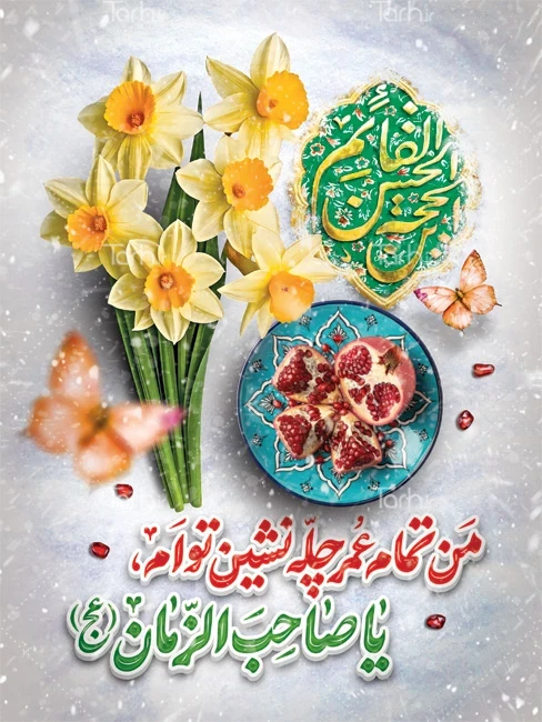 طرح پوستر یلدا و حضرت مهدی با فرمت psd و قابل ویرایش در نرم افزار فتوشاپ به صورت لایه باز توسط تیم طراحان طرح دات آی آر طراحی شده است. در طرح لایه باز پوستر یلدای مهدوی از تصاویر و المان های با کیفیت و متناسب با استاندارد چاپ استفاده گردیده است. پوستر شب یلدا و امام زمان لایه باز شامل عکس گل نرگس و انار، تایپوگرافی من تمام عمر چله نشین تو ام یا صاحب الزمان می باشد که المان های استفاده شده در بنر لایه باز شب یلدا و امام زمان قابلیت ویرایش، جابه جایی و تغییر سایز را دارا بوده و شما می توانید متناسب با سلیقه خودتان طرح شب یلدا و حضرت مهدی را ویرایش نمایید.