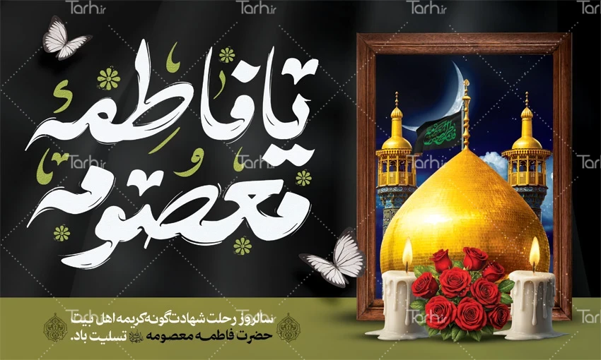 طرح بنر پشت منبری رحلت حضرت معصومه با فرمت psd و قابل ویرایش در نرم افزار فتوشاپ به صورت لایه باز توسط تیم طراحان طرح دات آی آر طراحی شده است. در پشت منبری لایه باز وفات حضرت معصومه از تصاویر و المان های با کیفیت و متناسب با استاندارد چاپ استفاده گردیده است. طرح بنر پشت منبری وفات حضرت معصومه شامل تایپوگرافی یا فاطمه معصومه، عکس گنبد و گلدسته حرم حضرت معصومه، وکتور گل و شمع می باشد که المان های استفاده شده در طرح بنر لایه باز رحلت حضرت معصومه قابلیت ویرایش، جابه جایی و تغییر سایز را دارا بوده و شما می توانید متناسب با سلیقه خودتان طرح بنر جایگاه رحلت حضرت معصومه را ویرایش نمایید.
