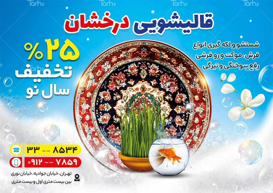 طرح لایه باز تراکت قالیشویی تخفیف ویژه عید نوروز کد فایل 3218640