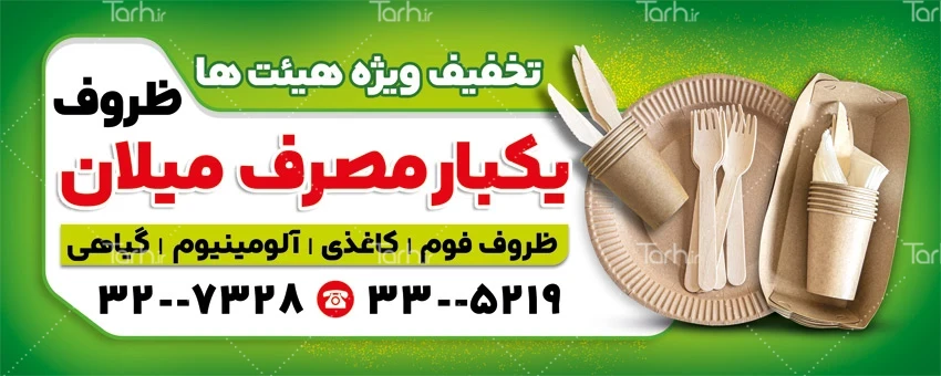 طرح بنر فروشگاه ظروف یکبار مصرف با بکگراند سبز کد فایل 3240598