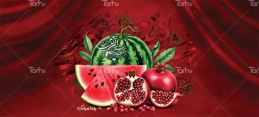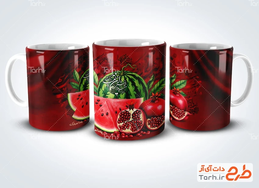 دانلود طرح روی ماگ شب یلدا دارای تصویرسازی انار و هندوانه کد فایل 3256198