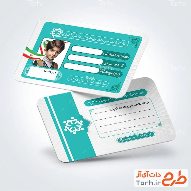 دانلود کارت شناسایی اعضای شورای دانش آموزی با فرمت psd و قابل ویرایش در نرمافزار فتوشاپ بهصورت لایه باز و پشت و رو (دو رو) توسط تیم طراحان طرح دات آی آر طراحی شده است. طرح کارت شناسایی اعضای شورای دانش آموزی از تصاویر و المانهای باکیفیت و متناسب با استاندارد چاپ استفادهشده، همچنین نکات مهم در طرح کارت مانند رنگبندی، رعایت حاشیه، فاصلهها، فضای کافی برای درج متن، سایز و نوع فونت مناسب طراحی کارت و ... رعایت گردیده است. نمونه کارت اعضای شورای دانش آموزی شامل عکس دانش آموز و اطلاعات شخصی میباشد که المانهای استفادهشده در طرح کارت عضویت اعضای شورای دانش آموزی قابلیت ویرایش، جابهجایی و تغییر سایز را دارا بوده و شما میتوانید متناسب باسلیقه خودتان کارت لایه باز شورای دانش آموزی را ویرایش نمایید، همچنین با تغییر تصاویر و متنها میتوانید طرح کارت کارمندی را به طرح کارت کسب و کار مد نظر خود شخصی سازی نمایید.