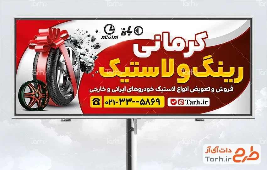 طرح لایه باز بیلبورد لاستیک فروشی با فرمت psd و قابل ویرایش در نرم افزار فتوشاپ به صورت لایه باز توسط تیم طراحان طرح دات آی آر طراحی شده است. در طرح لایه باز بنر لاستیک فروشی از تصاویر و المان های با کیفیت و متناسب با استاندارد چاپ استفاده شده، همچنین نکات مهم در طرح بنر لایه باز مشاغل مانند رنگ بندی، رعایت حاشیه، فاصله ها، سایز و نوع فونت مناسب طراحی تابلو مشاغل و ... رعایت گردیده است. طرح بنر لاستیک فروشی شامل عکس لاستیک و تعمیرکار لاستیک می باشد که المان های استفاده شده در طرح تابلو آپاراتی قابلیت ویرایش، جابه جایی و تغییر سایز را دارا بوده و شما می توانید متناسب با سلیقه خودتان طرح بنر تبلیغاتی لاستیک فروشی را ویرایش نمایید، همچنین با تغییر تصاویر و متن ها می توانید طرح تابلو لاستیک و آپاراتی را به طرح تابلوی شغل مورد نظر خود تبدیل نمایید.