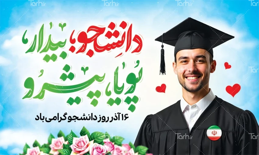 دانلود طرح بنر روز دانشجو با تایپوگرافی دانشجو بیدار پویا پیشرو کد فایل 3421769