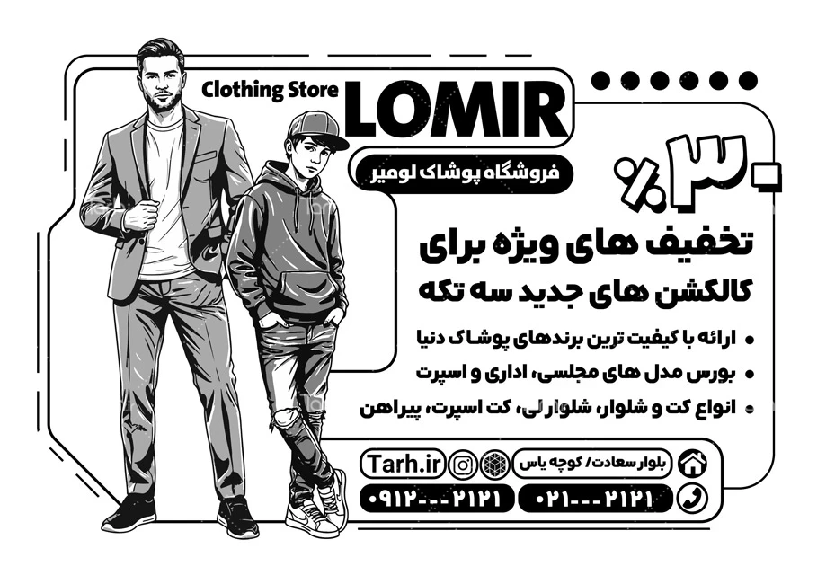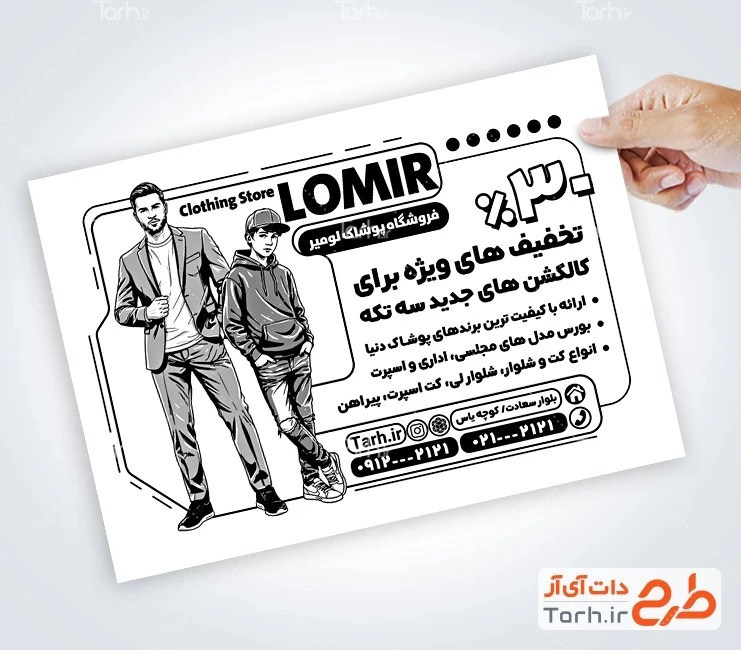- دسته بندی : تراکت سیاه سفید پوشاک آقایان