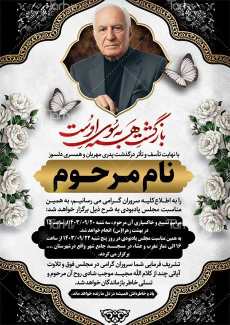 طرح لایه باز اعلامیه ترحیم پدر با تایپوگرافی بازگشت همه به سوی اوست کد فایل 3450819
