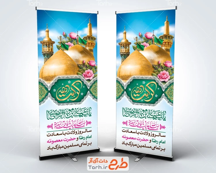 ابعاد بنر استند دهه کرامت و ولادت حضرت معصومه 0.9*2 متر با رزولوشن 72 dpi و ابعاد لمپوست دهه کرامت و میلاد حضرت معصومه 1*2 متر با رزولوشن 72 dpi می باشد.سایز استند و لمپوست به هم نزدیک بوده و می توان طرح های استند و لمپوست را به جای هم استفاده نمود. با توجه به لایه باز بودن و کیفیت بالای طرح، قابلیت ویرایش و تبدیل به سایز دلخواه و همچنین چاپ در ابعاد و متریال های مختلف (فلکس، پارچه و ...) را دارا می باشد. بنر استند 2 در 90، قابلیت چاپ بنر و لارج فرمت تا ابعاد 4 در 2 متر را بدون افت کیفیت دارد، همچنین برای ابعاد بزرگتر نیز در صورتی که فاصله بیننده تا بنر بیشتر از 8 متر باشد، طرح استند ولادت حضرت معصومه و امام رضا قابل چاپ و نصب بوده و افت کیفیت به چشم نمی آید. طرح های بنر ولادت امام رضا و حضرت معصومه با هدف زیباسازی و گرامیداشت دهه کرامت در خیابان ها و طرح های استند دهه کرامت در اماکن اداری، تاریخی، عمومی، سطح شهر و مراسمات ملی و مذهبی نصب می گردند.