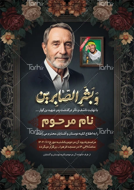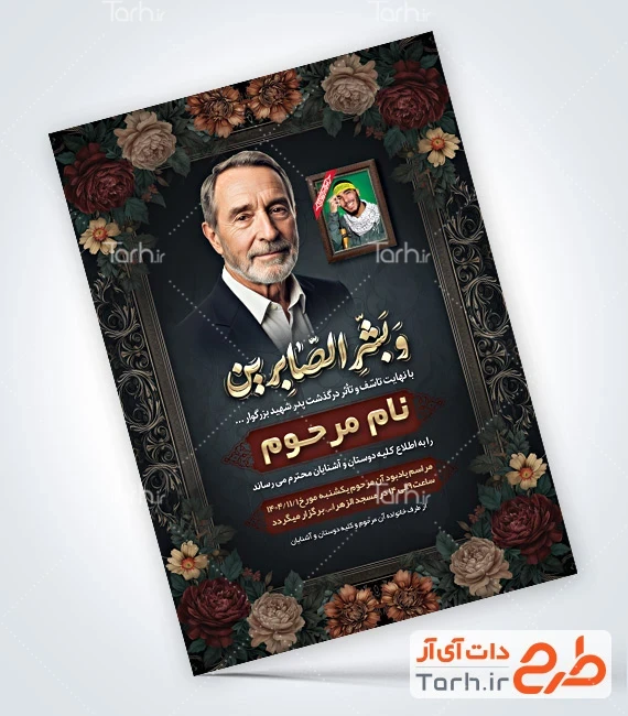فایل لایه باز اعلامیه ترحیم پدر شهید شامل تایپوگرافی و بشر الصابرین کد فایل 3467895