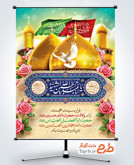 پوستر اعیاد شعبانیه لایه باز با فرمت psd و قابل ویرایش در نرم افزار فتوشاپ به صورت لایه باز توسط تیم طراحان طرح دات آی آر طراحی شده است. در بنر اعیاد شعبانیه از تصاویر و المان های با کیفیت و متناسب با استاندارد چاپ استفاده گردیده است. بنر لایه باز اعیاد شعبانیه شامل عکس گنبد و گلدسته حرم امام حسین و حضرت عباس، تایپوگرافی یا علی بن الحسین السجاد، یا علی بن اباالفضل العباس، یا اباعبدالله الحسین الشهید و وکتور گل میباشد که المان های استفاده شده در طرح لایه باز بنر اعیاد شعبانیه قابلیت ویرایش، جابه جایی و تغییر سایز را دارا بوده و شما می توانید متناسب با سلیقه خودتان طرح لایه باز اعیاد شعبانیه را ویرایش نمایید.