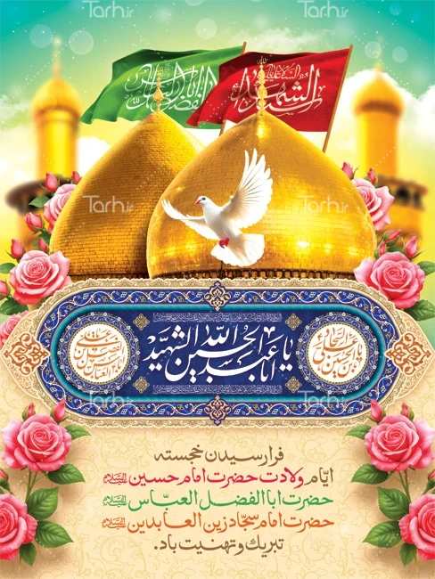 پوستر اعیاد شعبانیه لایه باز با عکس گنبد و گلدسته حرم امام حسین و حضرت عباس کد فایل 3479580