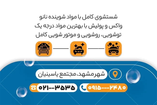 فایل کارت ویزیت کارواش با قابلیت ویرایش المان ها کد فایل 3485069