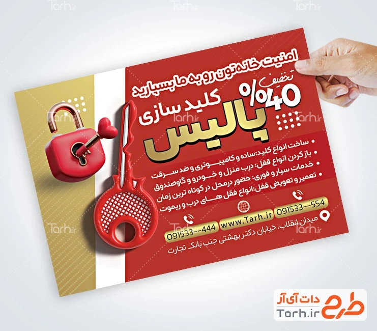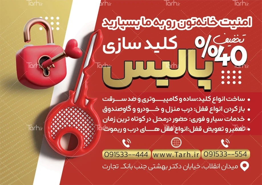 طرح آماده تراکت قفل و کلیدسازی با تم قرمز کد فایل 3498156
