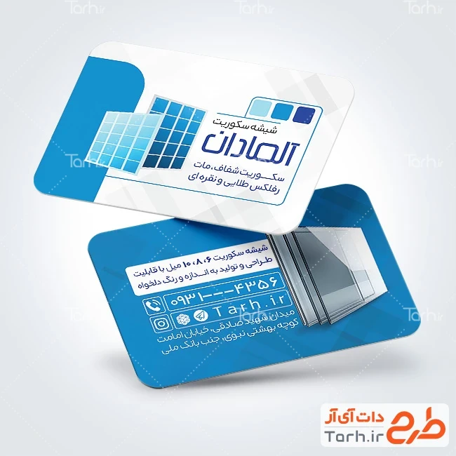 طرح خام کارت ویزیت شیشه سکوریت با رنگبندی آبی کد فایل 3512649
