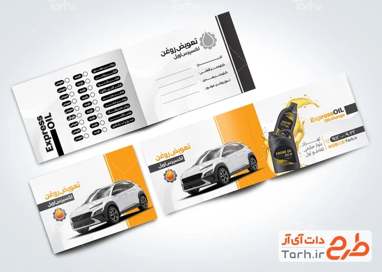 طرح آماده دفترچه تعویض روغنی با فرمت psd و قابل ویرایش در نرمافزار فتوشاپ بهصورت لایه باز توسط تیم طراحان طرح دات آی آر طراحی شده است. در نمونه دفترچه تعویض روغن از تصاویر و المانهای باکیفیت و متناسب با استاندارد چاپ استفادهشده، همچنین نکات مهم در طرح خام دفترچه تعویض روغنی مانند رنگبندی، رعایت حاشیه، فاصلهها، فضای کافی برای درج متن، سایز و نوع فونت مناسب دفترچه بازدید دوره ای خودرو و ... رعایت گردیده است. طرح لایه باز دفترچه اتوسرویس شامل عکس اتومبیل میباشد که المانهای استفادهشده در طرح دفترچه اتوسرویس قابلیت ویرایش، جابهجایی و تغییر سایز را دارا بوده و شما میتوانید متناسب باسلیقه خودتان طرح دفترچه اتو سرویس را ویرایش نمایید، همچنین با تغییر تصاویر و متنها میتوانید طرح دفترچه سرویس دوره ای خودرو را به طرح قبض کسب و کار مد نظر خود شخصی سازی نمایید.