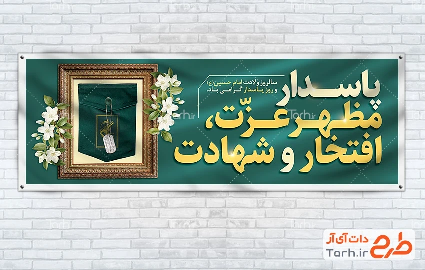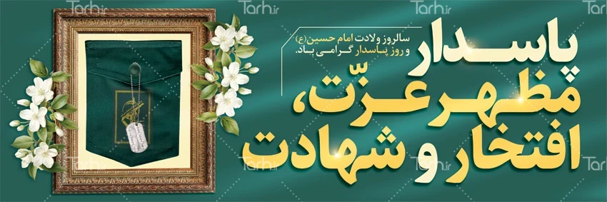 طرح لایه باز پلاکارد تبریک روز پاسدار با فرمت psd و قابل ویرایش در نرم افزار فتوشاپ به صورت لایه باز توسط تیم طراحان طرح دات آی آر طراحی شده است. در طرح لایه باز بنر روز پاسدار و ولادت امام حسین از تصاویر و المان های با کیفیت و متناسب با استاندارد چاپ استفاده گردیده است. طرح بنر میلاد امام حسین و روز پاسدار شامل عکس لباس پاسدار و متن تبریک ولادت امام حسین میباشد که المان های استفاده شده در بنر لایه باز روز پاسدار و ولادت امام حسین قابلیت ویرایش، جابه جایی و تغییر سایز را دارا بوده و شما می توانید متناسب با سلیقه خودتان طرح لایه باز روز پاسدار را ویرایش نمایید.