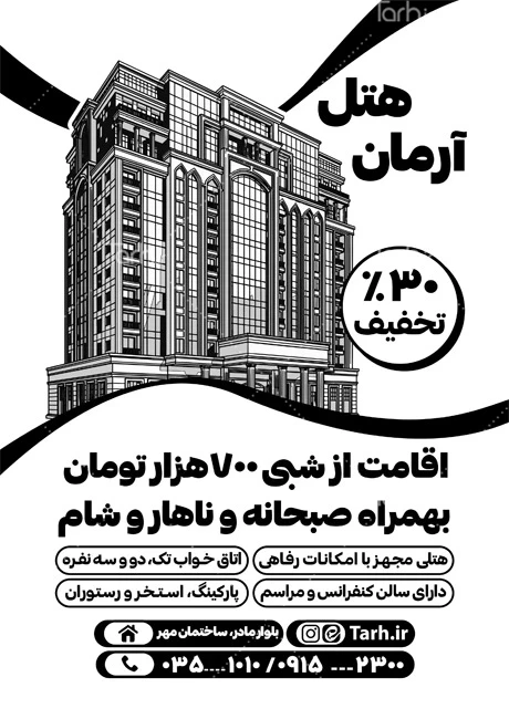 - دسته بندی : تراکت سیاه سفید هتل و مهمانسرا