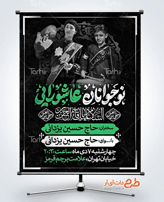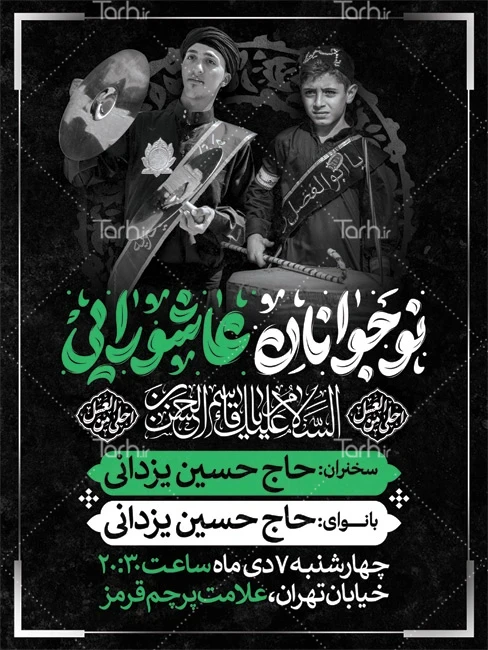 طرح بنر اطلاع رسانی همایش نوجوانان عاشورایی با فرمت psd و قابل ویرایش در نرم افزار فتوشاپ به صورت لایه باز توسط تیم طراحان طرح دات آی آر طراحی شده است. در طرح لایه باز اطلاعیه همایش نوجوانان عاشورایی از تصاویر و المان های با کیفیت و متناسب با استاندارد چاپ استفاده گردیده است. طرح اطلاعیه خام شهادت حضرت قاسم شامل تایپوگرافی نوجوانان عاشورایی و دارای زمان و مکان مراسم روضه و عزاداری می باشد که المان های استفاده شده در بنر اطلاعیه همایش نوجوانان عاشورایی قابلیت ویرایش، جابه جایی و تغییر سایز را دارا بوده و شما می توانید متناسب با سلیقه خودتان طرح بنر لایه باز اطلاعیه محرم را ویرایش نمایید.