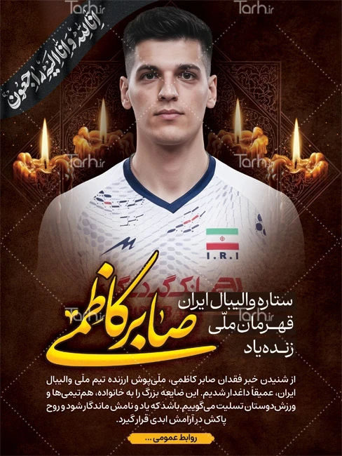 طرح بنر رایگان درگذشت صابر کاظمی ملی پوش والیبال با قابلیت ویرایش کد فایل 3571294
