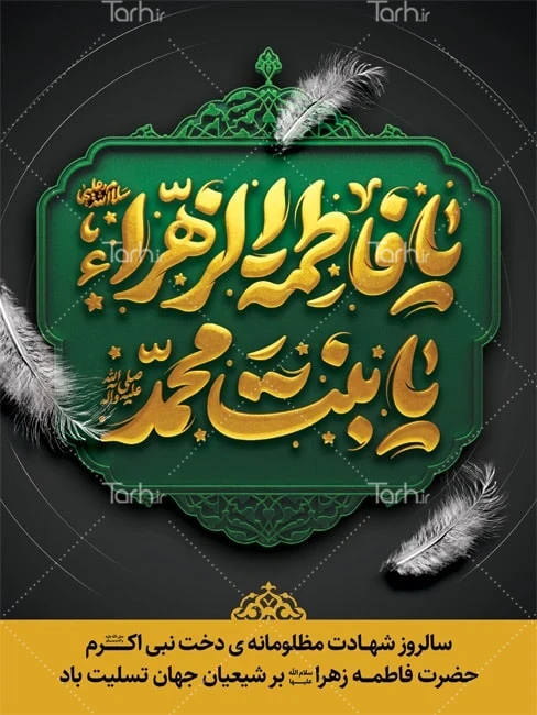 طرح پوستر تسلیت ایام فاطمیه با فرمت psd و قابل ویرایش در نرم افزار فتوشاپ به صورت لایه باز توسط تیم طراحان طرح دات آی آر طراحی شده است. در طرح لایه باز فاطمیه از تصاویر و المان های با کیفیت و متناسب با استاندارد چاپ استفاده گردیده است. طرح بنر فاطمیه شامل تایپوگرافی یا فاطمه الزهرا یا بنت محمد و وکتور پر می باشد که المان های استفاده شده در پوستر شهادت حضرت زهرا قابلیت ویرایش، جابه جایی و تغییر سایز را دارا بوده و شما می توانید متناسب با سلیقه خودتان طرح بنر شهادت حضرت فاطمه را ویرایش نمایید.