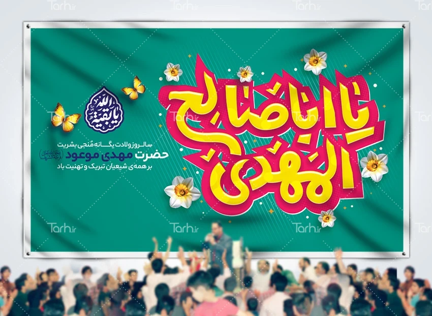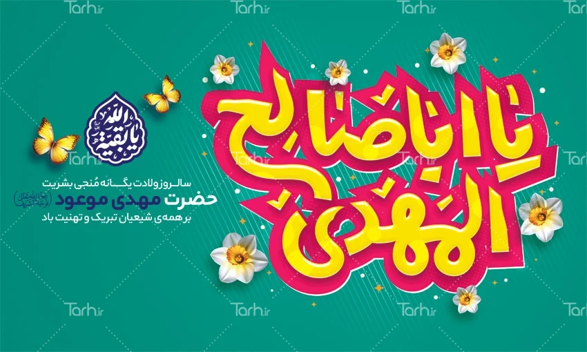 طرح لایه باز بنر جایگاه ولادت امام زمان با تایپوگرافی یا اباصالح المهدی کد فایل 3580729