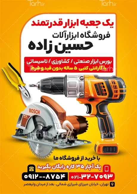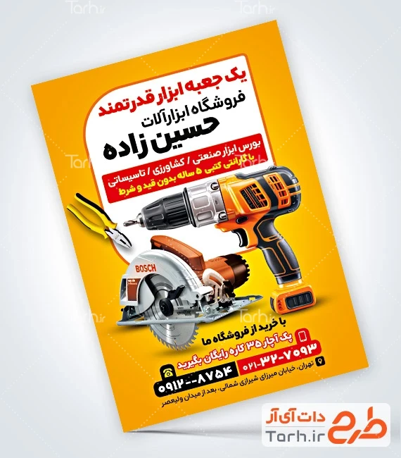 نمونه تراکت فروشگاه ابزار با عکس دریل شارژی کد فایل 3581240