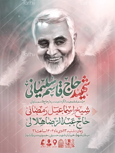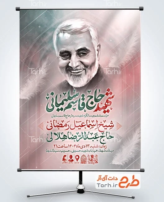طرح آماده بنر اطلاع رسانی مراسم شهادت سردار سلیمانی با تایپوگرافی شهید حاج قاسم سلیمانی کد فایل 3591286