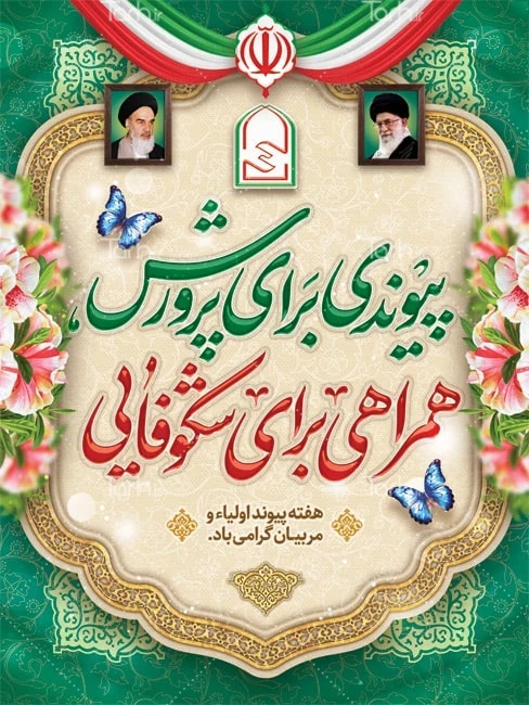 بنر لایه باز هفته پیوند اولیا و مربیان با فرمت psd و قابل ویرایش در نرم افزار فتوشاپ به صورت لایه باز توسط تیم طراحان طرح دات آی آر طراحی شده است. در طرح بنر هفته ی پیوند اولیا و مربیان از تصاویر و المانهای با کیفیت و متناسب با استاندارد چاپ استفاده گردیده است. طرح لایه باز تبریک هفته اولیاء و مربیان شامل خوشنویسی پیوندی برای پرورش همراهی برای شکوفایی، عکس رهبر و امام خمینی، وکتور گل و پرچم ایران می باشد. المانهای استفاده شده در طرح بنر هفته اولیاء و مربیان قابلیت ویرایش، جابه جایی و تغییر سایز را دارا بوده و شما می توانید متناسب با سلیقه خودتان بنر لایه باز هفته ی پیوند اولیا و مربیان را ویرایش نمایید.