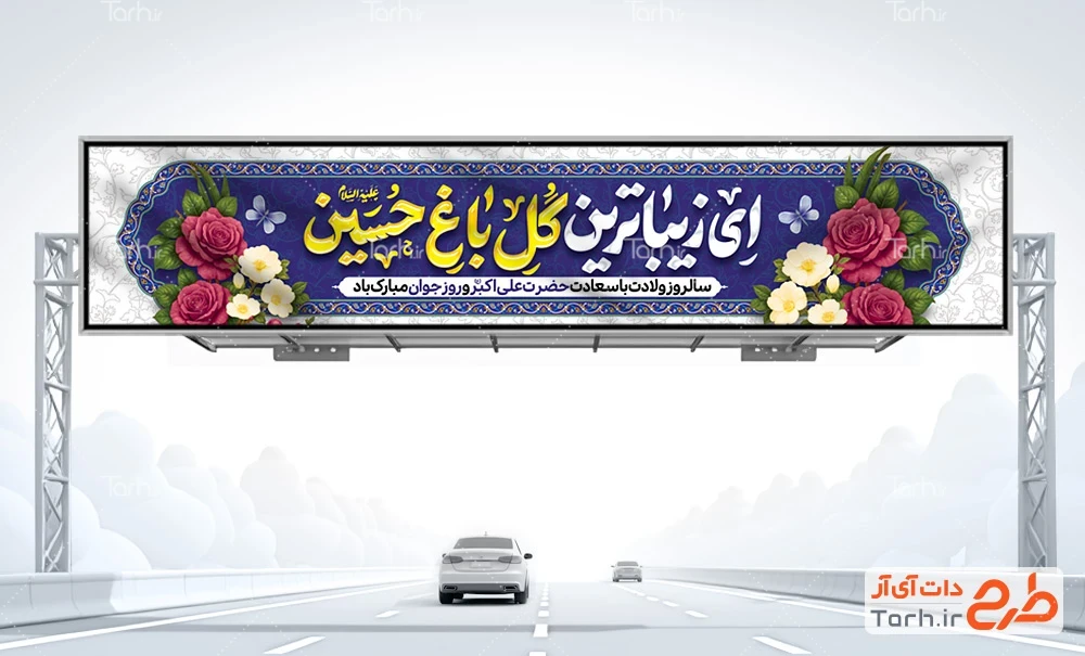 بیلبورد خام ولادت حضرت علی اکبر با تایپوگرافی ای زیباترین گل باغ حسین کد فایل 3596087