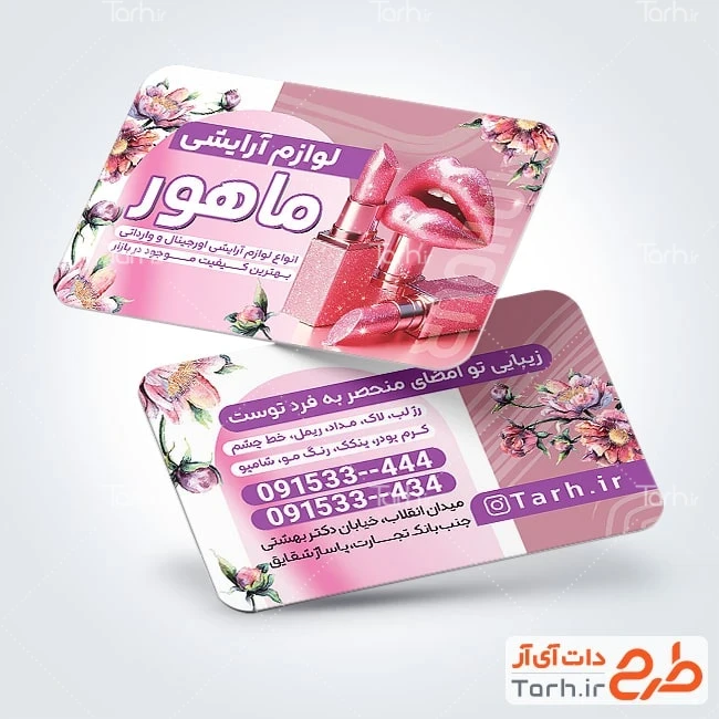 فایل لایه باز کارت ویزیت لوازم آرایشی بهداشتی شامل عکس محصولات آرایشی