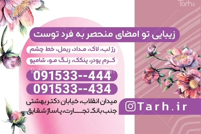 ابعاد قابل چاپ طرح لایه باز کارت ویزیت لوازم آرایشی و کاربرد آن