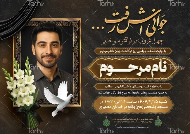 دانلود طرح آگهی ترحیم چهلم جوان ناکام با محل جایگذاری عکس مرحوم کد فایل 3604297