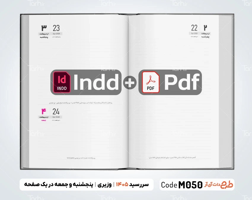 طرح سررسید 1405، سایز وزیری، پنجشنبه و جمعه در یک صفحه کد فایل 3627018