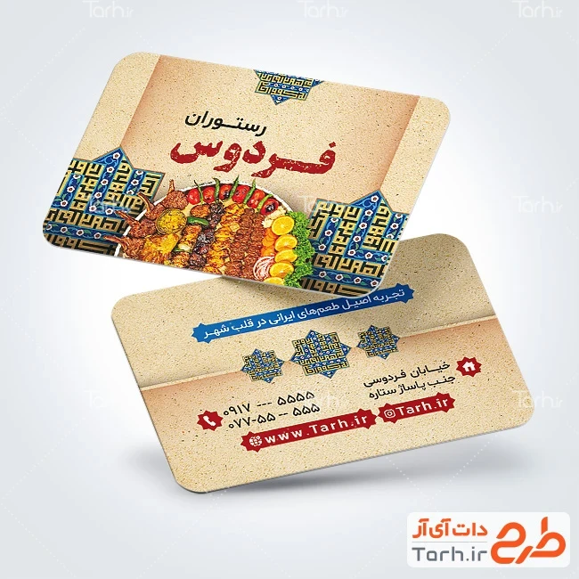 کارت ویزیت لایه باز رستوران و غذاخوری با عکس ظرف غذای ایرانی کد فایل 3642781