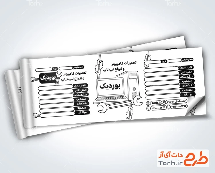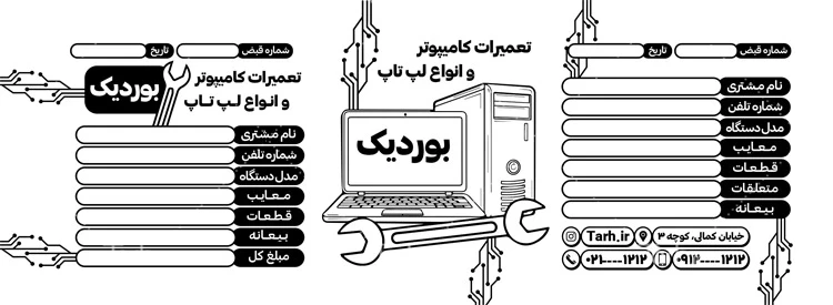 طرح آماده قبض رسید تعمیرات کامپیوتر دارای وکتور سیاه و سفید لپ تاپ کد فایل 3651472