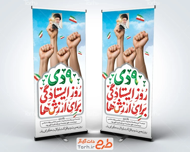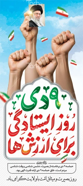 طرح استند حماسه 9 دی با تایپوگرافی 9 دی روز ایستادگی برای ارزش ها کد فایل 3691082