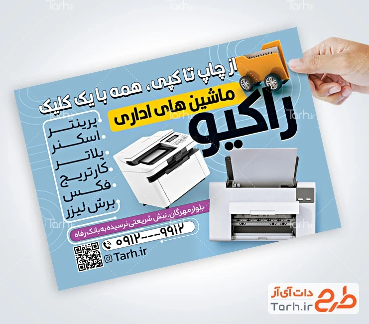 ابعاد طرح تراکت تبلیغاتی تجهیزات اداری در جدول ویژگیهای فایل درجشده و با توجه به لایه باز بودن و کیفیت بالای طرح ماشین های اداری، قابلیت ویرایش و تبدیل به سایز دلخواه، همچنین چاپ روی متریالهای مختلف مانند بنر، کاغذ، گلاسه و ... را دارا میباشد. برای مثال تراکت خام ماشین اداری در ابعاد A4 رزولوشن 300 dpi قابلیت چاپ بنر و لارج فرمت در ابعاد بزرگتر مانند 3 در 4 متر و بدون افت کیفیت را دارا میباشد. تراکت ها به عنوان یک ابزار تبلیغاتی بسیار موثر محسوب می شوند و به دلیل هزینه کم و تأثیر بالا، در بسیاری از کسب و کارها به عنوان روشی برای تبلیغات و رویدادهای مختلف مورد استفاده قرار می گیرند.