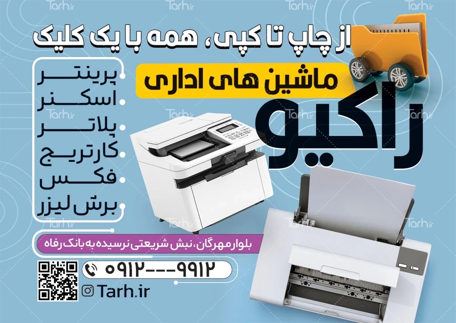 دانلود تراکت خام ماشین های اداری با فرمت psd و قابل ویرایش در نرمافزار فتوشاپ بهصورت لایه باز توسط تیم طراحان طرح دات آی آر طراحی شده است. در نمونه تراکت ماشین های اداری از تصاویر و المانهای باکیفیت و متناسب با استاندارد چاپ استفادهشده، همچنین نکات مهم در طرح تراکت ماشین های اداری مانند رنگبندی، رعایت حاشیه، فاصلهها، فضای کافی برای درج متن، سایز و نوع فونت مناسب طراحی تراکت و ... رعایت گردیده است. طرح لایه باز تراکت دستگاه کپی و پرینتر شامل عکس دستگاه پرینتر میباشد که المانهای استفادهشده در طرح تراکت ماشین اداری قابلیت ویرایش، جابهجایی و تغییر سایز را دارا بوده و شما میتوانید متناسب باسلیقه خودتان تراکت لایه باز ماشین های اداری را ویرایش نمایید، همچنین با تغییر تصاویر و متنها میتوانید طرح تراکت ماشینهای اداری را به طرح تراکت کسب و کار مد نظر خود شخصی سازی نمایید.