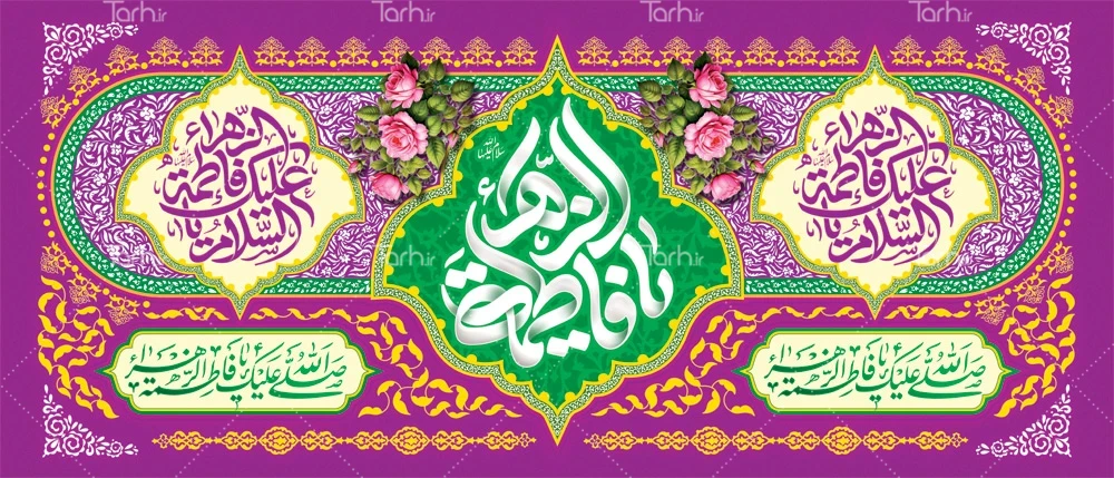 طرح بنر کتیبه جشن میلاد حضرت زهرا دارای خوشنویسی یا فاطمه الزهرا کد فایل 3694802